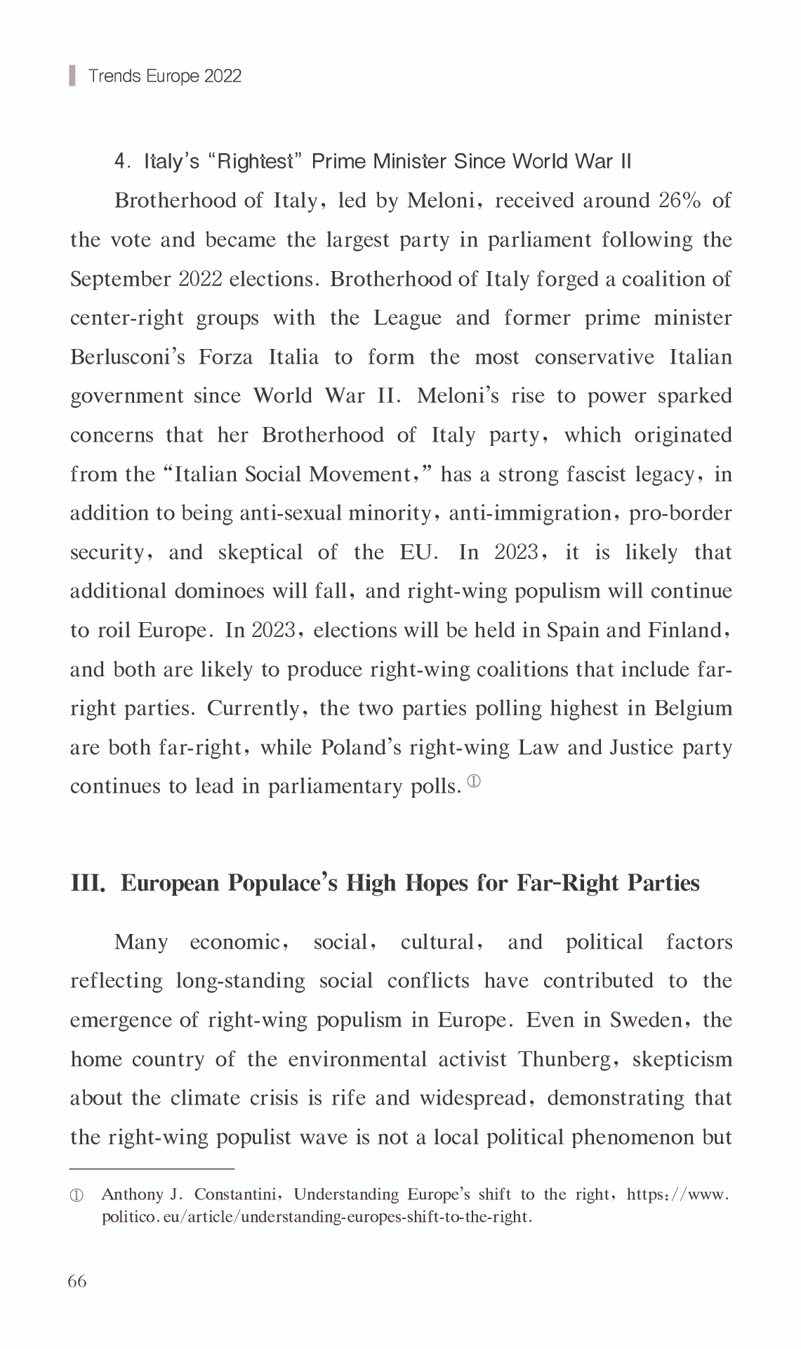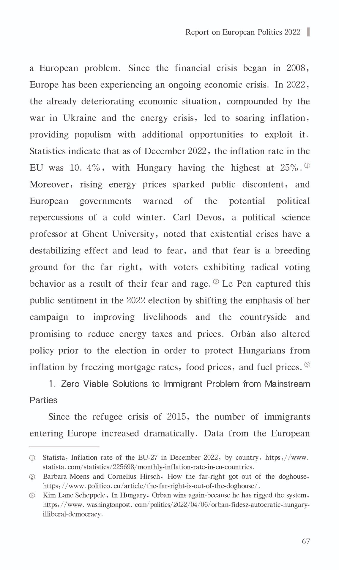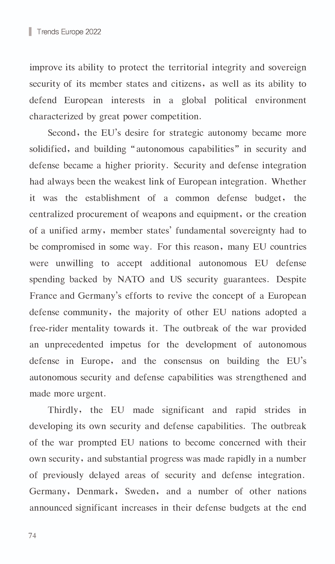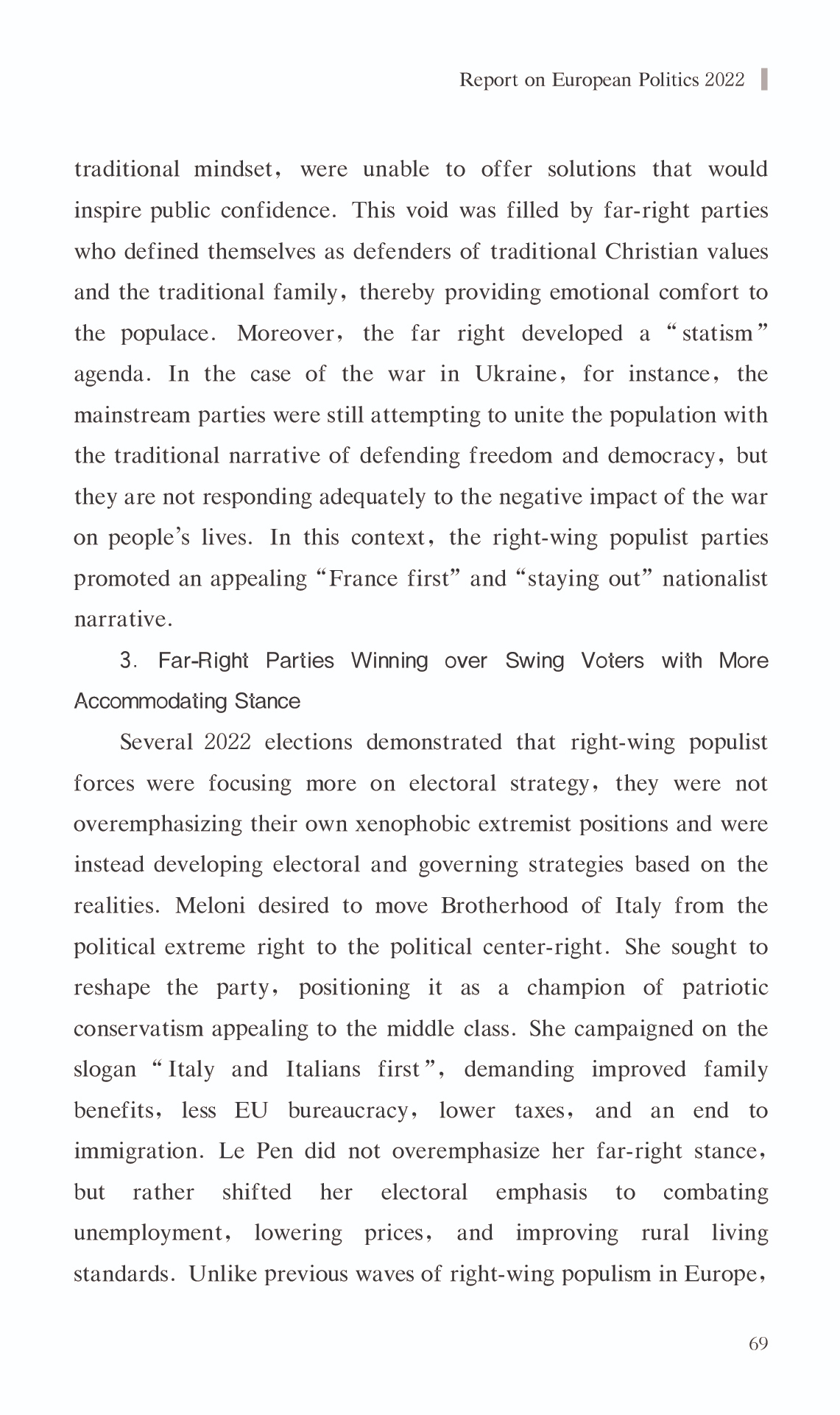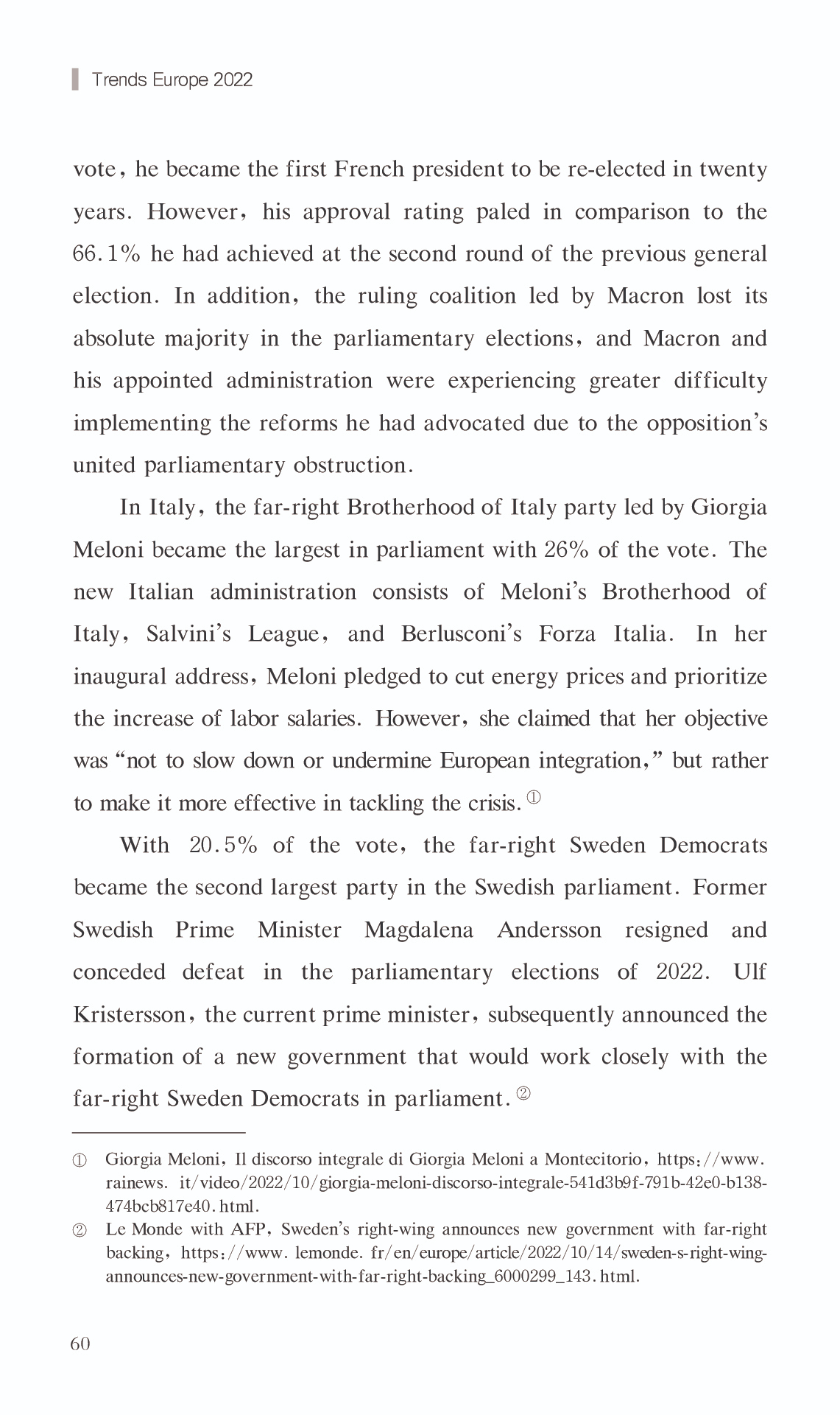 { "@context": "https://schema.org", "@graph": [ { "@type": "AnalysisNewsArticle", "headline": "Report on European Politics 2022", "name": "Report on European Politics 2022", "description": "In 2022, the war in Ukraine shook the world, marking \u0022unprecedented upheaval in the world, in the times, and in the course of history”. Europe descended into the gravest geopolitical and security crisis since World War Il, and European nations passed a “historic turning point\u0022 in their policy orientation. In a number of European nations, 2022 was a turbulent election year in which the influence of the far right grew. As the European Union\u0027s reliance on the United States increased, its strategic autonomy diminished.", "datePublished": "Wed, 03/15/2023 - 12:00", "publisher": { "@type": "EducationalOrganization", "@id": "SAGGAS", "name": "Shanghai Academy of Global Governance \u0026 Area Studies (SAGGAS)" } }, { "@type": "Person", "name": "Report on European Politics 2022", "description": "In 2022, the war in Ukraine shook the world, marking \u0022unprecedented upheaval in the world, in the times, and in the course of history”. Europe descended into the gravest geopolitical and security crisis since World War Il, and European nations passed a “historic turning point\u0022 in their policy orientation. In a number of European nations, 2022 was a turbulent election year in which the influence of the far right grew. As the European Union\u0027s reliance on the United States increased, its strategic autonomy diminished." } ] }