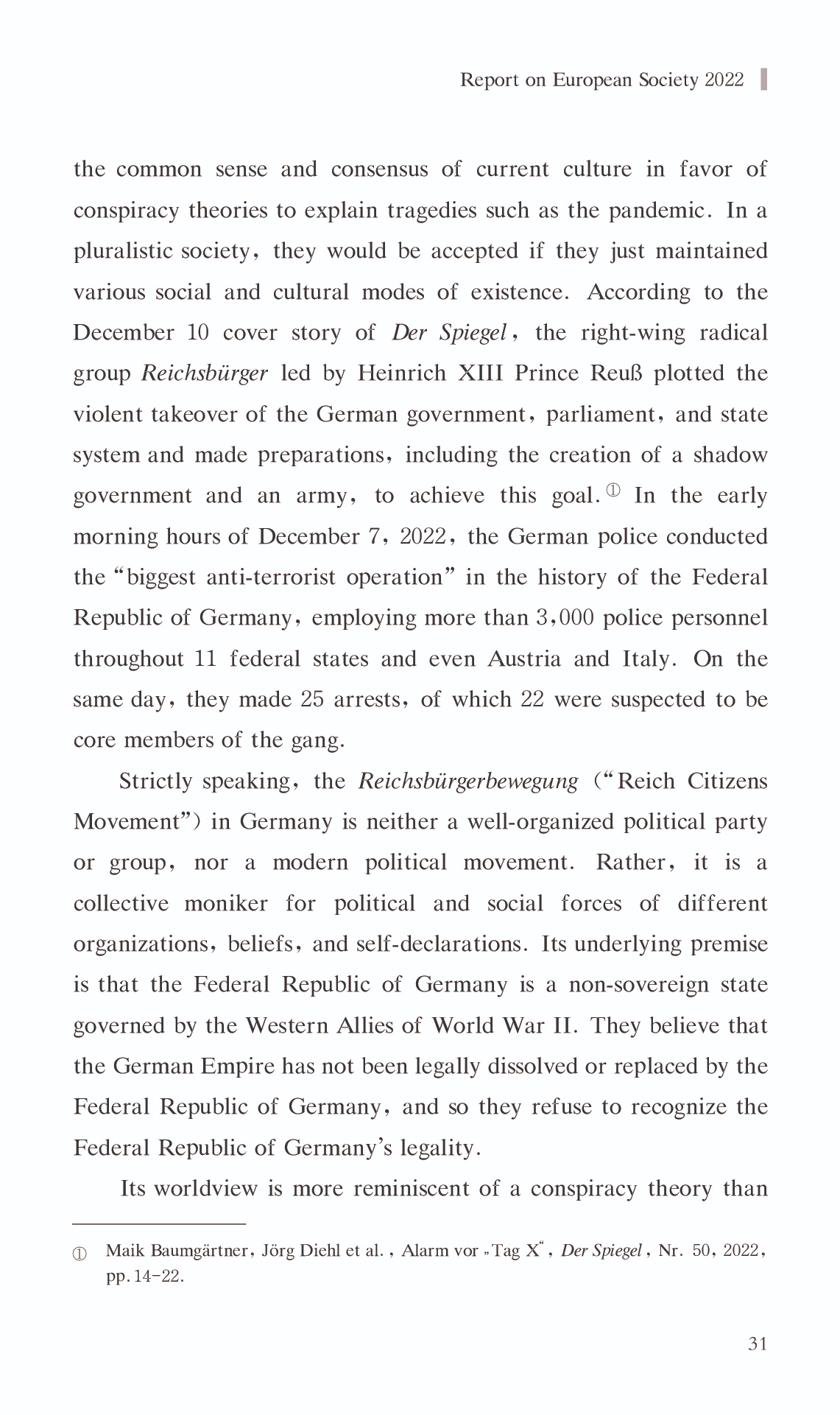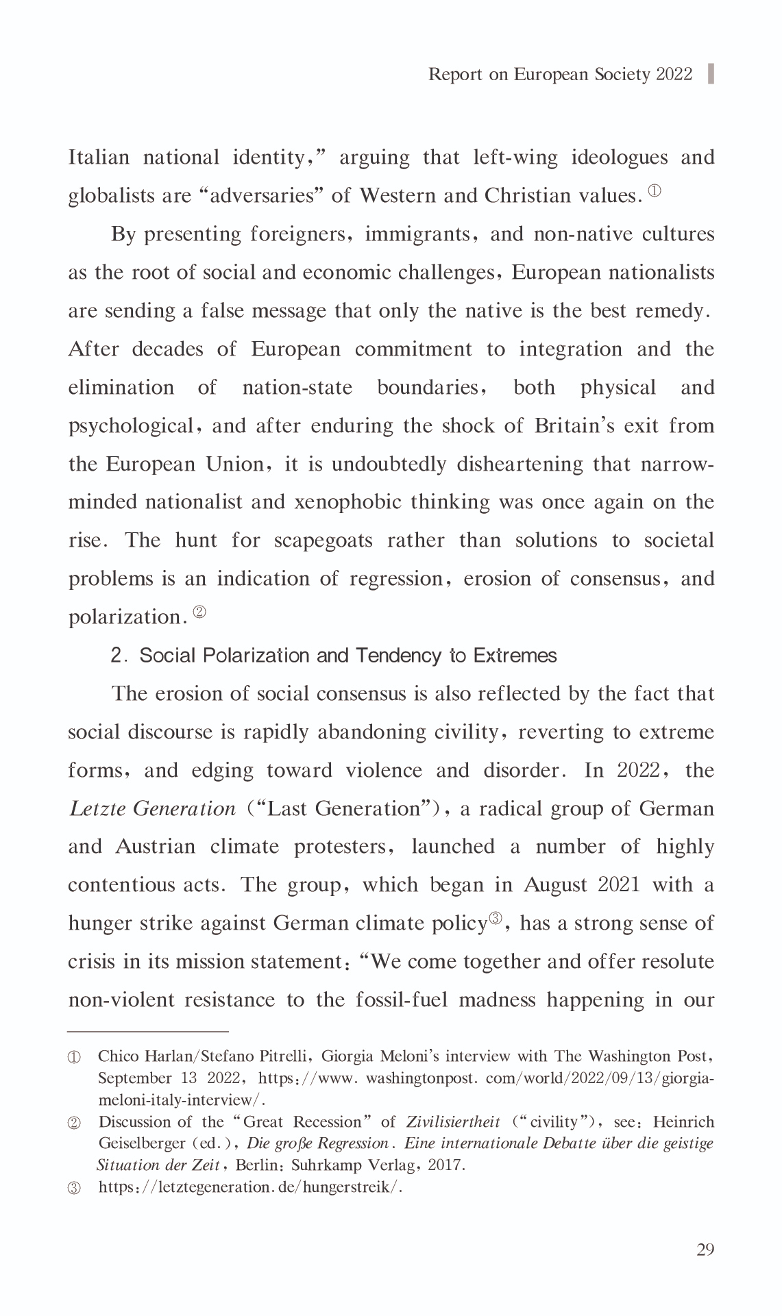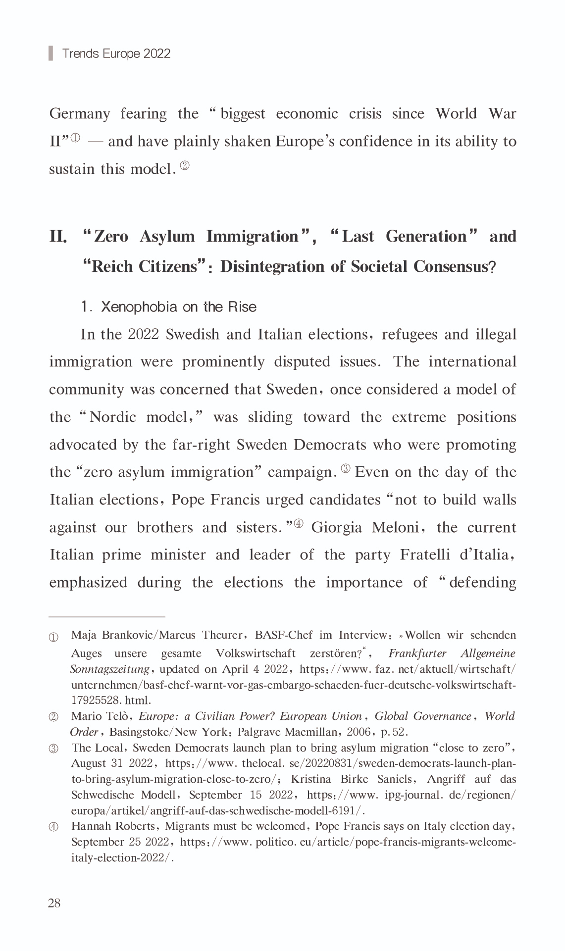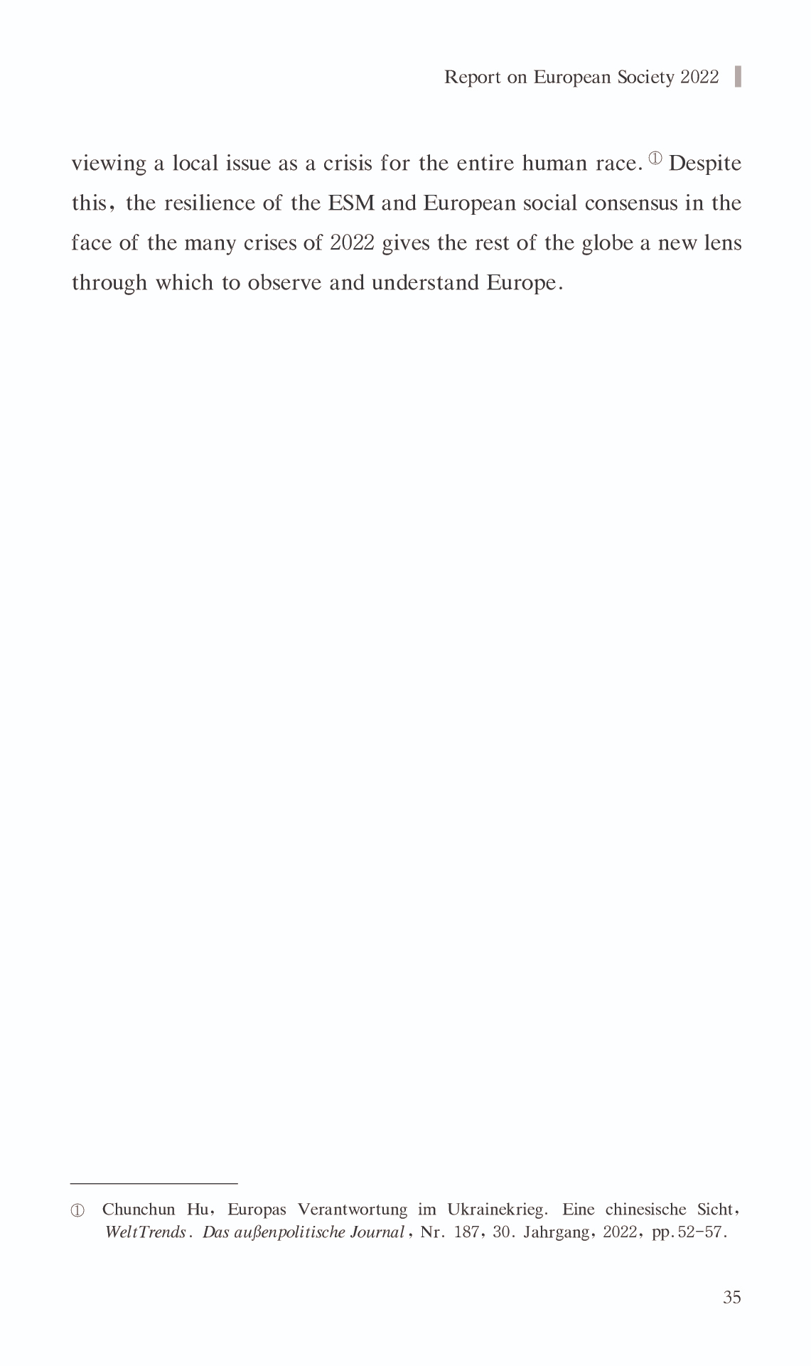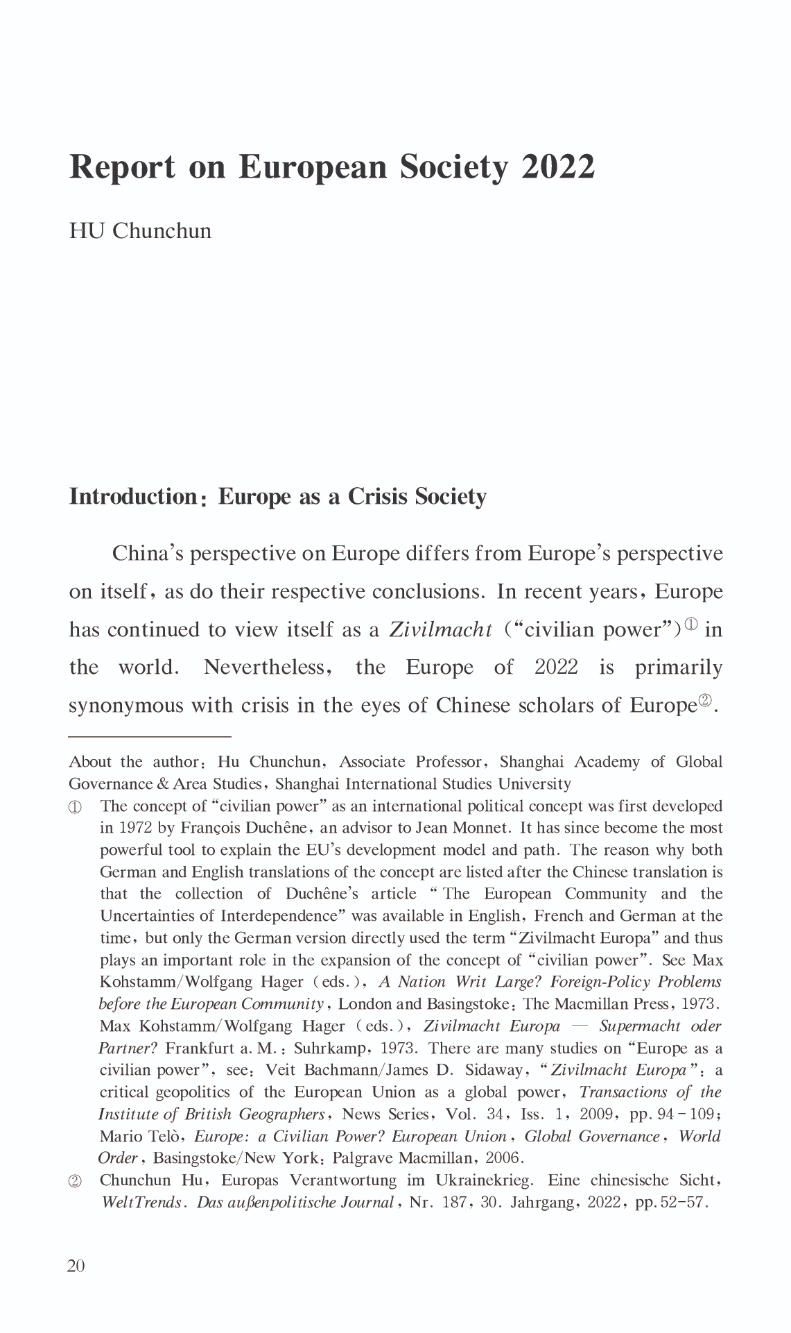 { "@context": "https://schema.org", "@graph": [ { "@type": "AnalysisNewsArticle", "headline": "Report on European Society 2022", "name": "Report on European Society 2022", "description": "China\u0027s perspective on Europe differs from Europe\u0027s perspective on itself, as do their respective conclusions. In recent years, Europe has continued to view itself as a Zivilmacht (“civilian power) in the world. Nevertheless, the Europe of 2022 is primarily synonymous with crisis in the eyes of Chinese scholars of Europe.", "datePublished": "Tue, 03/14/2023 - 12:00", "publisher": { "@type": "EducationalOrganization", "@id": "SAGGAS", "name": "Shanghai Academy of Global Governance \u0026 Area Studies (SAGGAS)" } }, { "@type": "Person", "name": "Report on European Society 2022", "description": "China\u0027s perspective on Europe differs from Europe\u0027s perspective on itself, as do their respective conclusions. In recent years, Europe has continued to view itself as a Zivilmacht (“civilian power) in the world. Nevertheless, the Europe of 2022 is primarily synonymous with crisis in the eyes of Chinese scholars of Europe." } ] }
