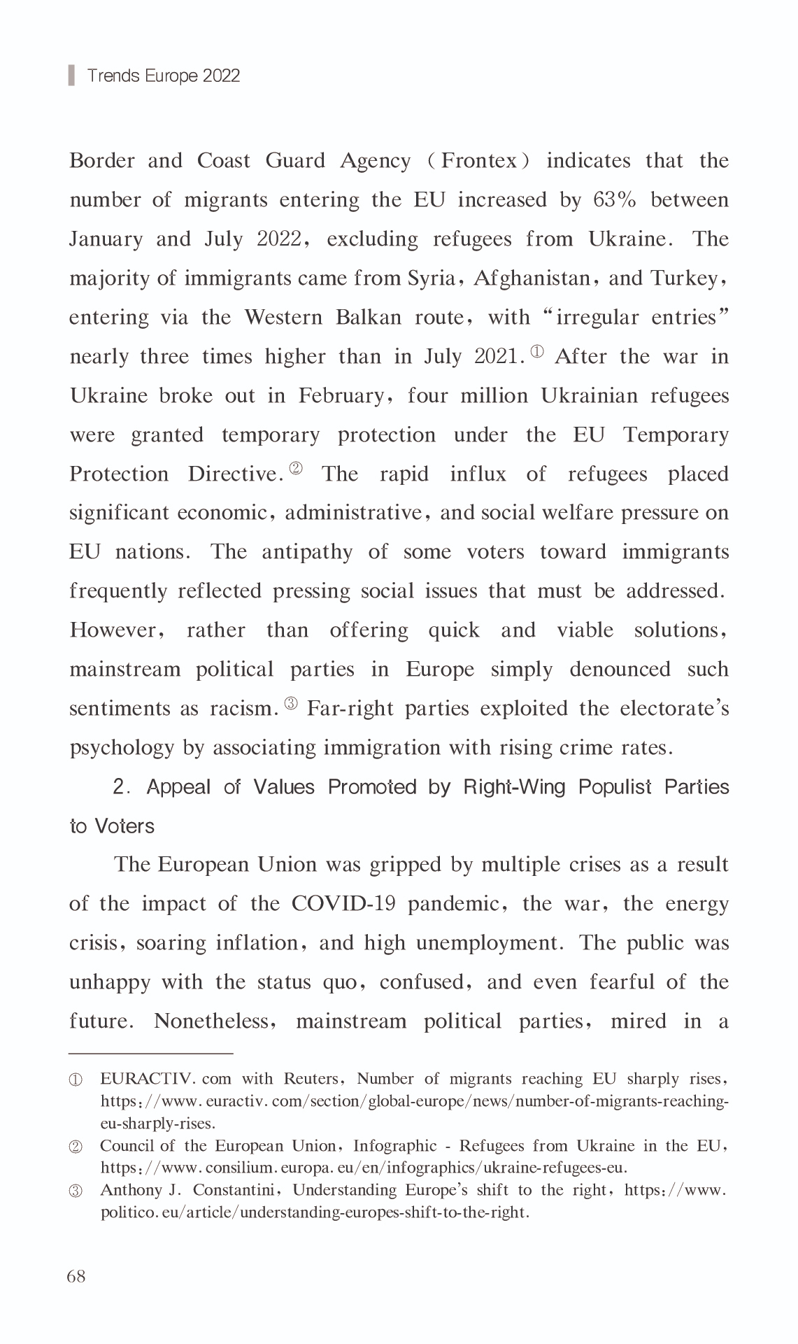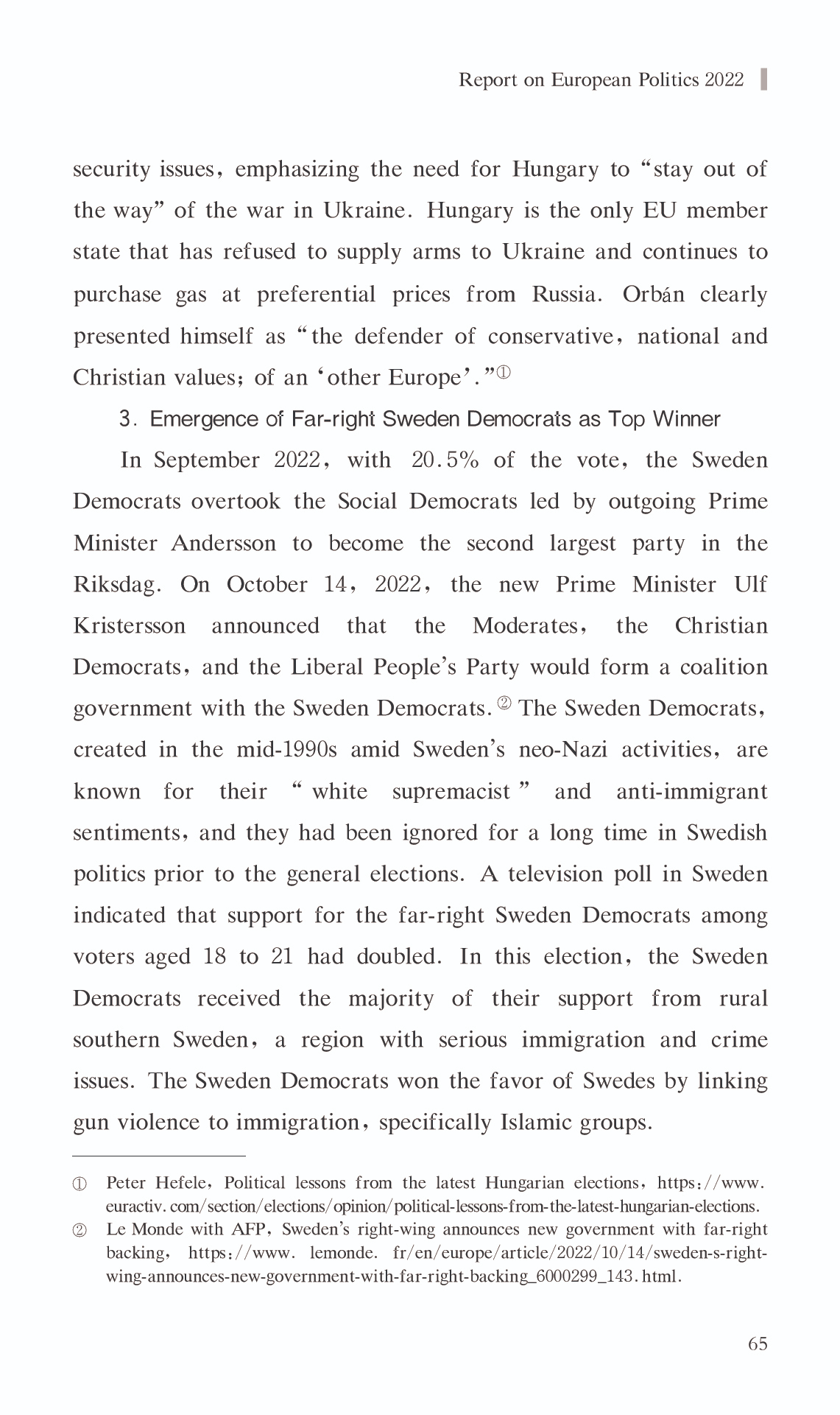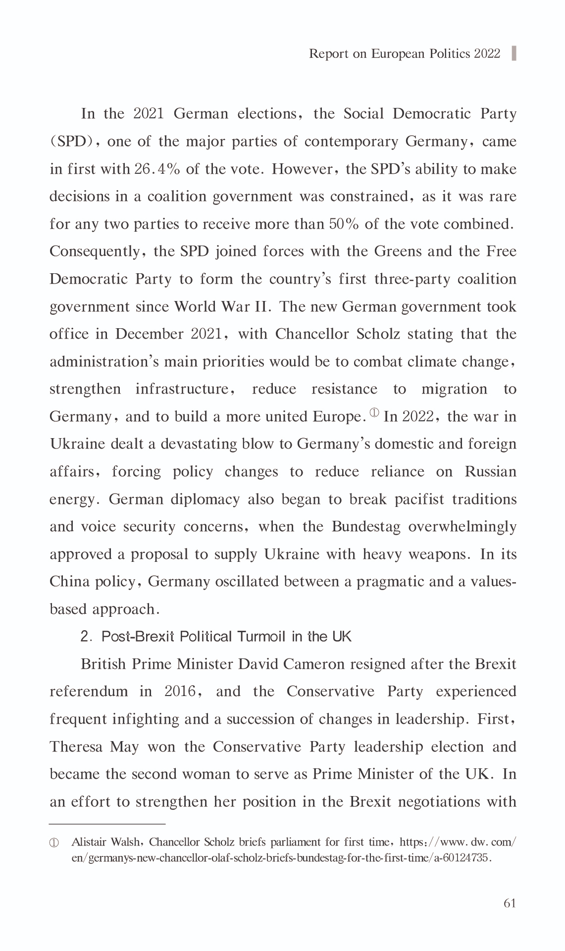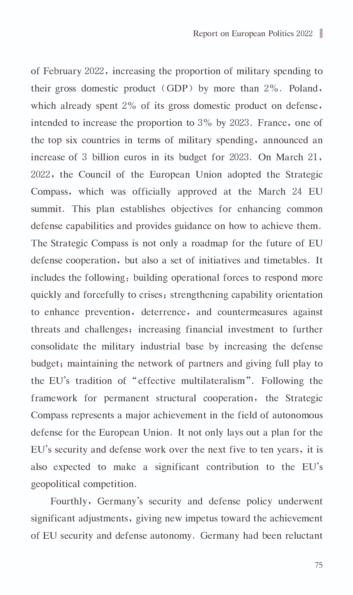 { "@context": "https://schema.org", "@graph": [ { "@type": "AnalysisNewsArticle", "headline": "Report on European Politics 2022", "name": "Report on European Politics 2022", "description": "In 2022, the war in Ukraine shook the world, marking \u0022unprecedented upheaval in the world, in the times, and in the course of history”. Europe descended into the gravest geopolitical and security crisis since World War Il, and European nations passed a “historic turning point\u0022 in their policy orientation. In a number of European nations, 2022 was a turbulent election year in which the influence of the far right grew. As the European Union\u0027s reliance on the United States increased, its strategic autonomy diminished.", "datePublished": "Wed, 03/15/2023 - 12:00", "publisher": { "@type": "EducationalOrganization", "@id": "SAGGAS", "name": "Shanghai Academy of Global Governance \u0026 Area Studies (SAGGAS)" } }, { "@type": "Person", "name": "Report on European Politics 2022", "description": "In 2022, the war in Ukraine shook the world, marking \u0022unprecedented upheaval in the world, in the times, and in the course of history”. Europe descended into the gravest geopolitical and security crisis since World War Il, and European nations passed a “historic turning point\u0022 in their policy orientation. In a number of European nations, 2022 was a turbulent election year in which the influence of the far right grew. As the European Union\u0027s reliance on the United States increased, its strategic autonomy diminished." } ] }
