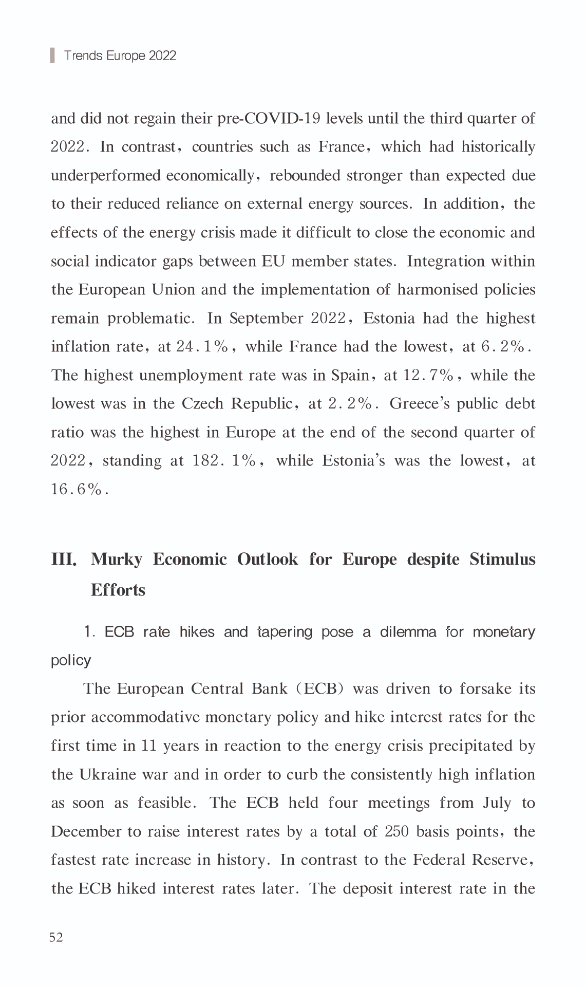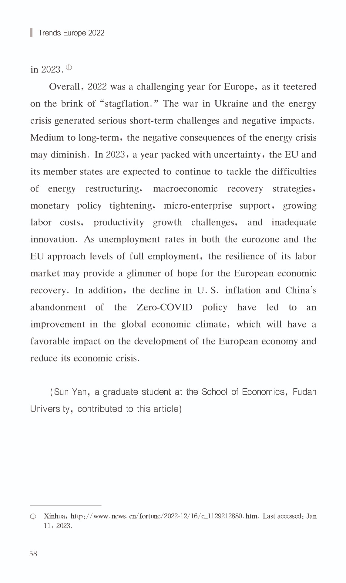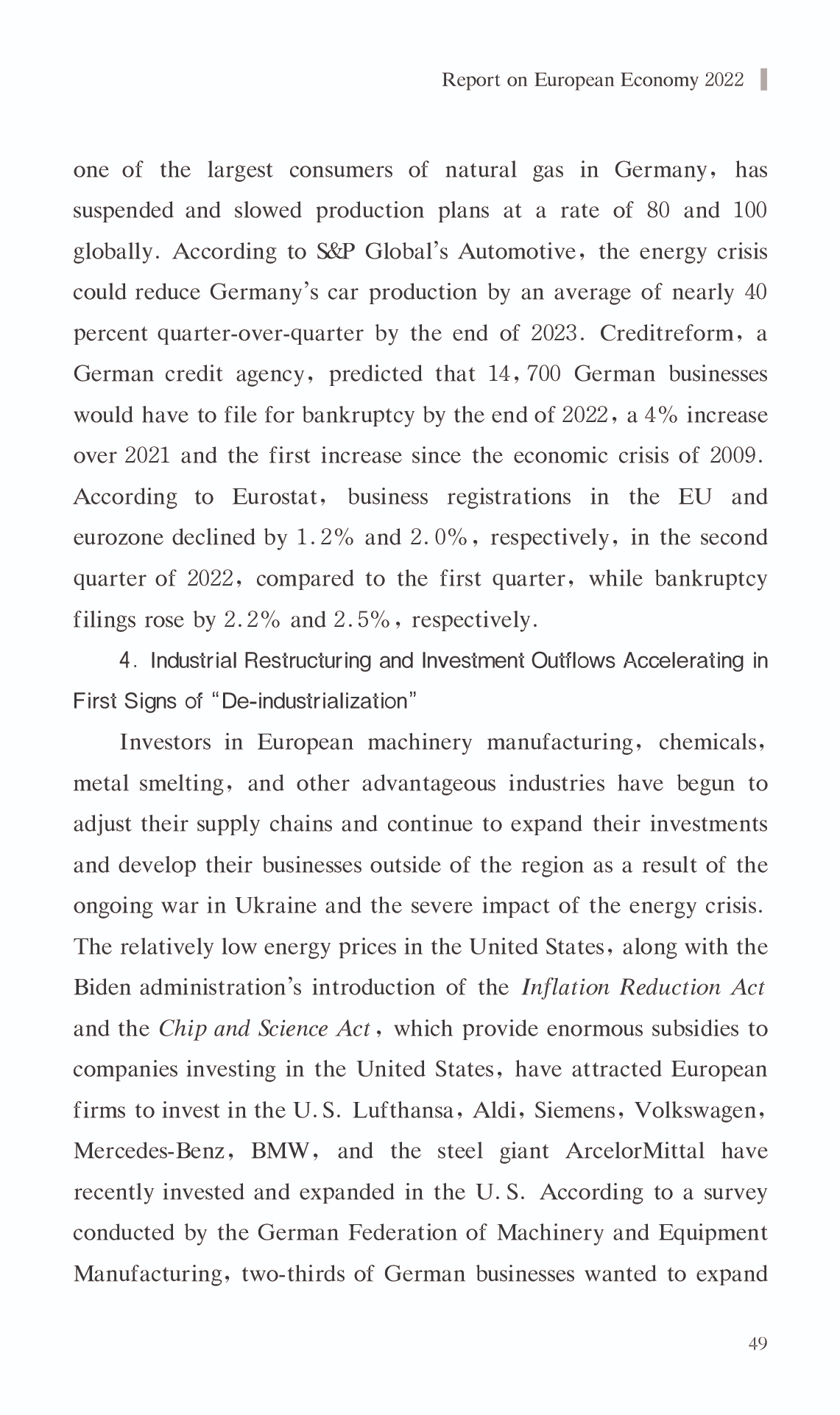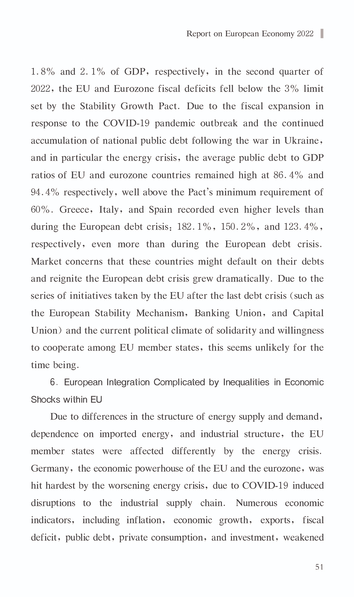 { "@context": "https://schema.org", "@graph": [ { "@type": "AnalysisNewsArticle", "headline": "Report on European Economy 2022", "name": "Report on European Economy 2022", "description": "In 2022, the European economy encountered difficulties and swings, with an upward trend followed by a drop. The energy crisis and soaring inflation were the most significant obstacles. The European economy started up where it left off in 2021 throughout the first half of the year, but the influence of COVID-19 on the European economy lingered, as the gloom of the pandemic had not yet lifted. The war in Ukraine caused a geopolitical catastrophe that precipitated Europe\u0027s greatest energy crisis since the 1970s, bringing inflation to all-time highs and retarding economic recovery. The European Commission\u0027s Economic Forecast for 2022 projects the EU\u0027s real GDP growth rate at roughly 3.3% in 2022, which is significantly lower than earlier estimates. In addition, the war in Ukraine and the energy crisis are predicted to have a detrimental impact on the European economy in the fourth quarter of 2022. It is anticipated that the decline in economic activity will continue into the first quarter of 2023. According to the Forecast, the EU and Eurozone are projected to grow at a slower pace in 2023,with real GDP growth of just 0.3% .", "datePublished": "Wed, 03/15/2023 - 12:00", "publisher": { "@type": "EducationalOrganization", "@id": "SAGGAS", "name": "Shanghai Academy of Global Governance \u0026 Area Studies (SAGGAS)" } }, { "@type": "Person", "name": "Report on European Economy 2022", "description": "In 2022, the European economy encountered difficulties and swings, with an upward trend followed by a drop. The energy crisis and soaring inflation were the most significant obstacles. The European economy started up where it left off in 2021 throughout the first half of the year, but the influence of COVID-19 on the European economy lingered, as the gloom of the pandemic had not yet lifted. The war in Ukraine caused a geopolitical catastrophe that precipitated Europe\u0027s greatest energy crisis since the 1970s, bringing inflation to all-time highs and retarding economic recovery. The European Commission\u0027s Economic Forecast for 2022 projects the EU\u0027s real GDP growth rate at roughly 3.3% in 2022, which is significantly lower than earlier estimates. In addition, the war in Ukraine and the energy crisis are predicted to have a detrimental impact on the European economy in the fourth quarter of 2022. It is anticipated that the decline in economic activity will continue into the first quarter of 2023. According to the Forecast, the EU and Eurozone are projected to grow at a slower pace in 2023,with real GDP growth of just 0.3% ." } ] }